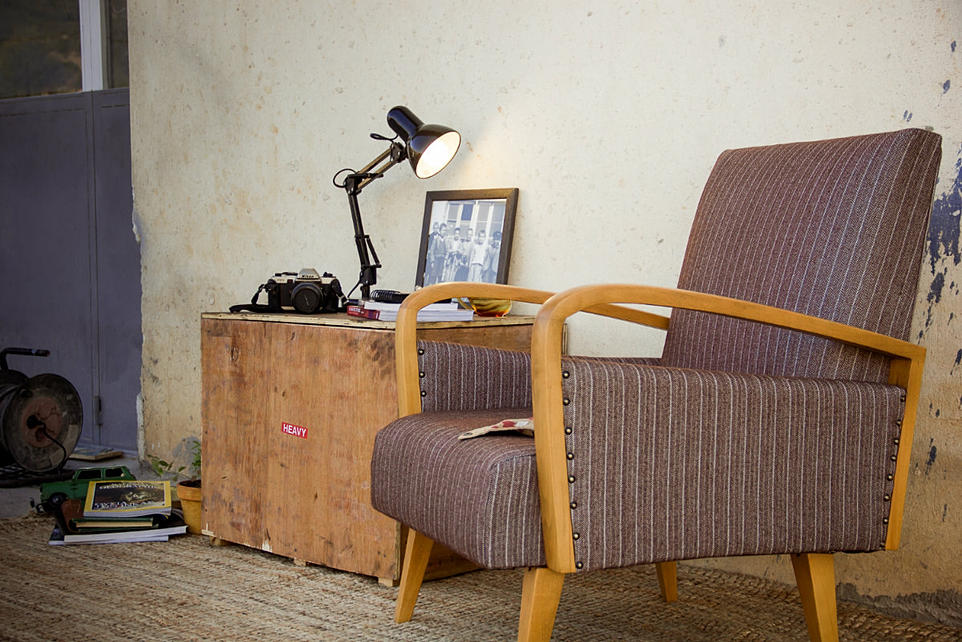 Ένας χώρος πρέπει να ξυπνάει κάτι από το θυμικό μας κάτι που να ενεργοποιεί αυτό το ένστικτο που σε ωθεί να κάνεις κάτι και αυτός ο χώρος για την Αγγελική είναι το παλιό εργαστήρι μοδιστρικής της γιαγιάς της. Σημειώνει χαρακτηριστικά: «Το παλιό εργαστήρι μοδιστρικής της γιαγιάς μου στο όποιο μεγάλωσα μέσα σε υφάσματα βελόνες και κλωστές τώρα είναι ο δικός μου χώρος δημιουργίας. Το παλιό ραδιοφωνάκι, αναπαλαιωμένο και αυτό δεν σταματάει ποτέ να παίζει, οι παλιές ραπτομηχανές τα καρούλια και τα υφάσματα δεν έχουν φύγει από τον χώρο και προσδίδουν τον δικό τους vintage χαρακτήρα στις δικές μου σύγχρονες δημιουργίες. Μέχρι τώρα έχω δημιουργήσει τρεις σειρές επίπλων. Στη σειρά Urbs, κυριαρχούν οι λιτές γραμμές και τα γραμμικά μοτίβα που παραπέμπουν στο industrial αστικό περιβάλλον, ενώ στη σειρά Sum με τα χειροποίητα υφάσματα και την ανάγλυφη ύφη, είναι εμφανής η σύνδεση με τη φύση. Μετά τον ερχομό της Νιόβης γεννήθηκε η ανάγκη για τη σειρά Sum Kids που σε αντίθεση με τις άλλες δυο κυριαρχούν καινούρια υλικά, εξ ‘ολόκληρου φτιαγμένα στο χέρι που προσαρμόζονται σε διαστάσεις, χρώματα και ιδέες».