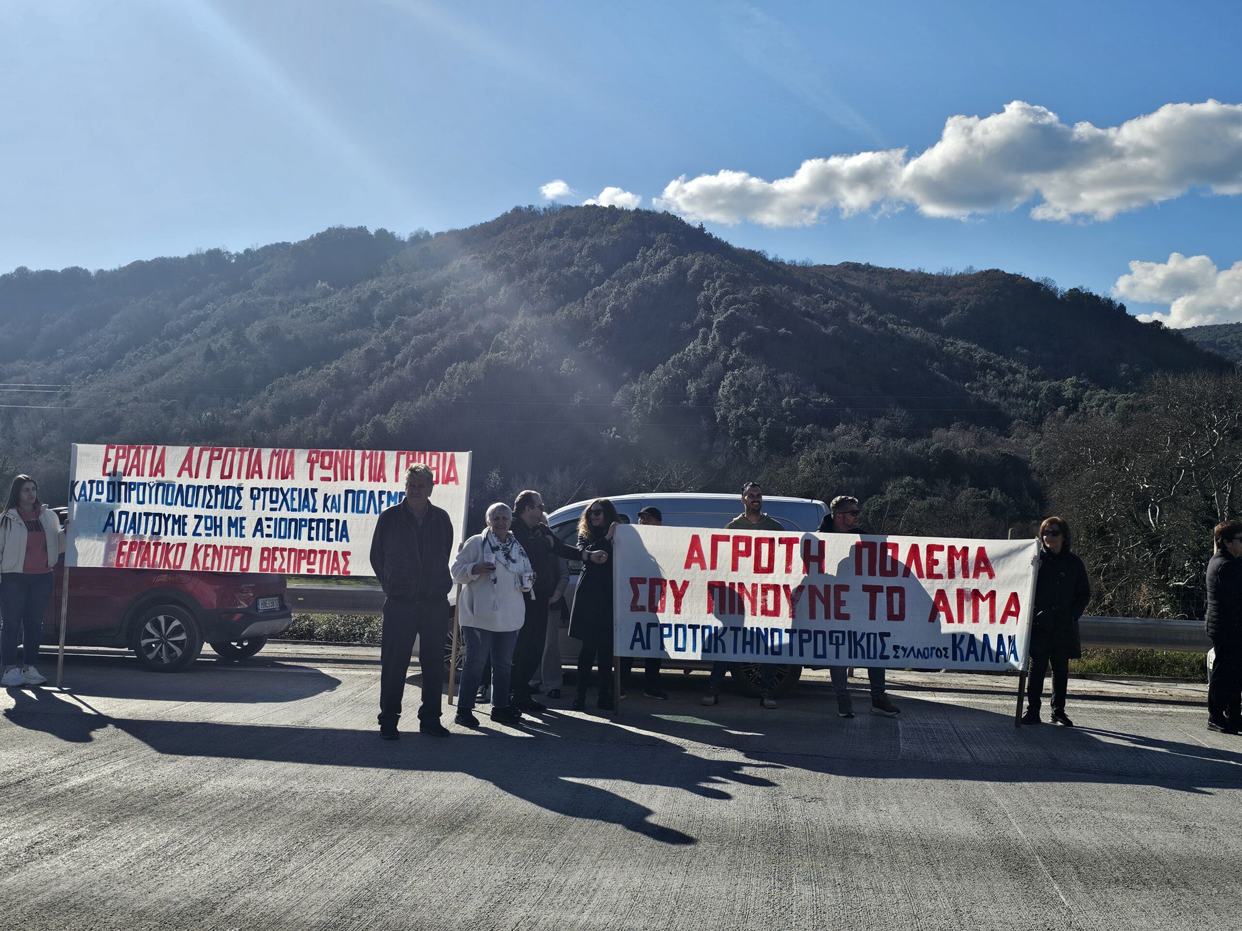 τη στήριξη δυνάμεων από τον Αγροτοκτηνοτροφικό Συλλόγο Καλαμά και των Εργατικών Κέντρων Θεσπρωτίας και Ιωαννίνων, παρουσία των προέδρων τους. Η κινητοποίηση πραγματοποιήθηκε στο πλαίσιο της κλιμάκωσης του αγώνα των αγροτών με βάση τις αποφάσεις από την Πανελλαδική Σύσκεψη των μπλόκων για διάφορες μορφές δράσης.