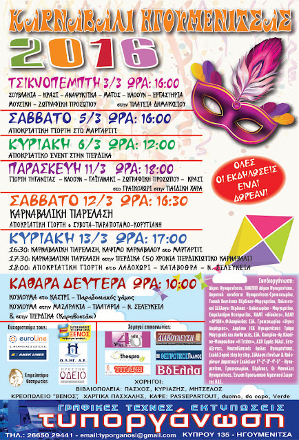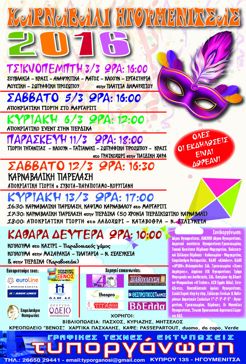 Άμεσο και επόμενο ραντεβού το Σάββατο στις 4 το μεσημέρι, στην αποκριάτικη γιορτή στο Μαργαρίτι.