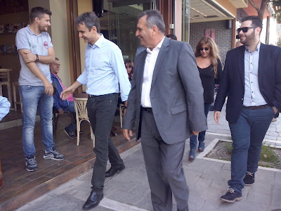 Στη συνέχεια συνοδευόμενος από στελέχη της Νέας Δημοκρατίας κάθισε σε ένα από τα κεντρικά καφέ της περιοχής, όπου συνομίλησε με πολίτες.