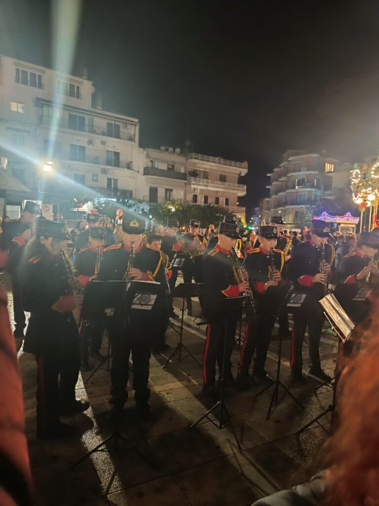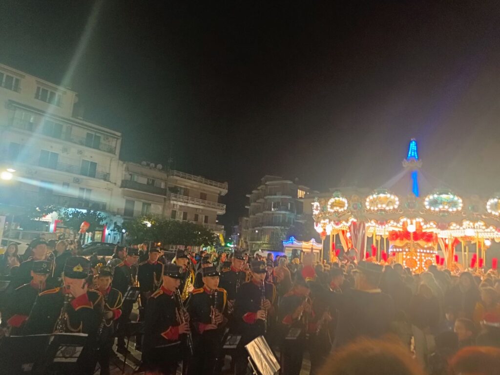 Τα ξύλινα σπιτάκια με τα τοπικά εδέσματα, το ζεστό κρασί και τη σοκολάτα, το καρουζέλ για τα παιδιά, δημιούργησαν ένα παραμυθένιο σκηνικό, ενώ η Φιλαρμονική πρόσφερε χριστουγεννιάτικες μελωδίες που έδωσαν τον τόνο του γιορτινού πνεύματος.