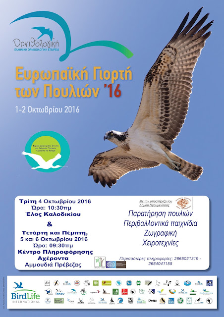 Ο Φορέας Διαχείρισης Στενών και Εκβολών Ποταμών Αχέροντα και Καλαμά, σε συνεργασία με την Ελληνική Ορνιθολογική Εταιρία διοργανώνει γιορτή για τα παιδιά με αφορμή την Πανευρωπαϊκή Γιορτή των Πουλιών με θέμα: «H προστασία των μεταναστευτικών πουλιών και των βιοτόπων τους».