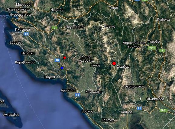 Σύμφωνα με την αυτόματη, προκαταρκτική λύση του Γεωδυναμικού Ινστιτούτου, ο σεισμός εκδηλώθηκε στις 11 και 12 πρώτα λεπτά και το επίκεντρο εντοπίστηκε ανάμεσα στο Σκιαδά Πρέβεζας και στην Γλυκή Θεσπρωτίας.
