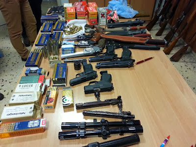 – Κατασχέθηκαν 7 πιστόλια, 5 περίστροφα, 2 πολεμικά τυφέκια, 2 κυνηγετικά όπλα και 1.421 φυσίγγια